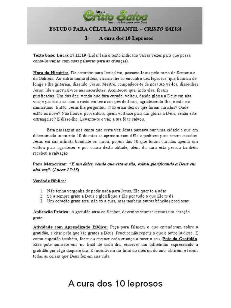 Aug 30, 2019 · a fé dos dez leprosos. .. Vamos nos concentrar um pouco na reação desses leprosos.